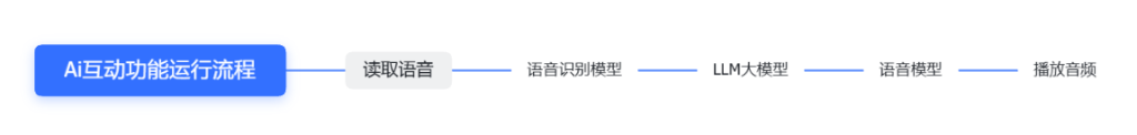 首先识别到语音,然后丢给语音识别模型,转换为语音文本,其次把语音文本丢给大模型,最后把大模型给出的文本转换为语音播放,就这样,你就得到了一个最基本的Ai聊天互动机器人