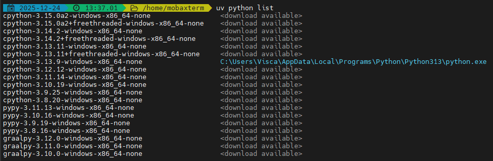 查看 uv 支持的 Python 版本: